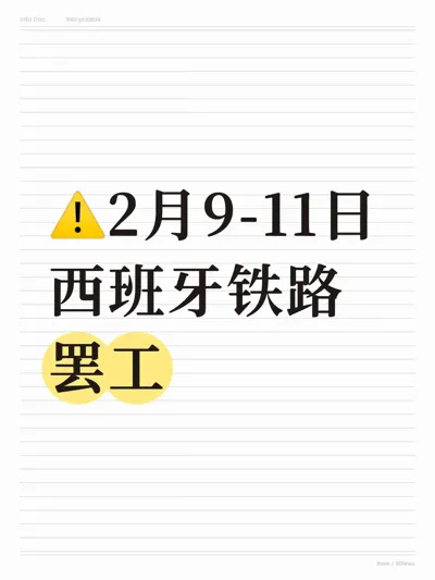 因为这几天发生多起铁路事故,西班牙铁路机车司机工会宣布将于 2 月 9 日、10 日和 11 日 举行为期三天的全国性大罢工