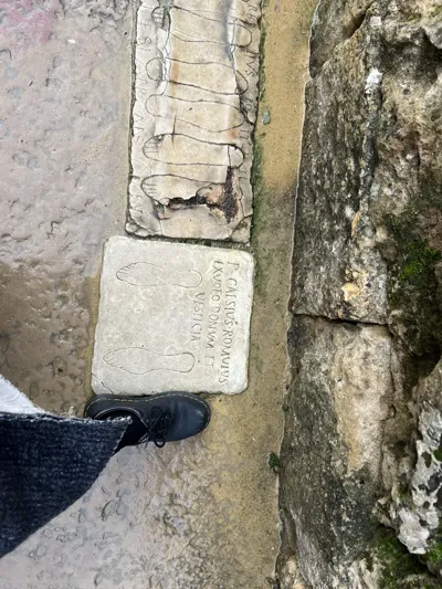 1️⃣p1-p3 斗兽场:城市外围最大的公建,也是《权利的游戏》的取景地之一。道路两侧镶嵌了很多捐赠的脚印,是古罗马人表达信仰崇拜的一种特殊的方式