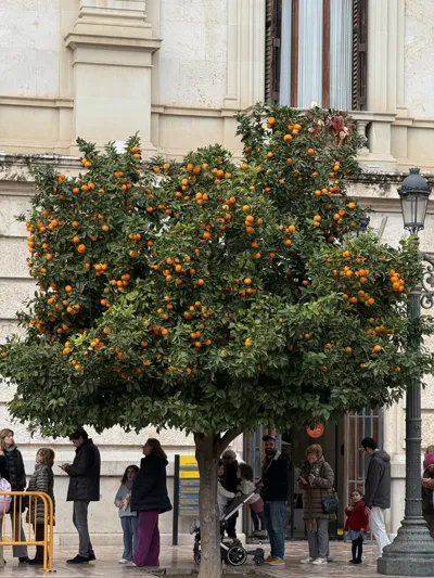 终于在西班牙见到挂着橘子的橘子树了