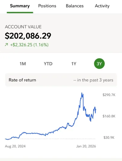 2024年8月开户,起始资金3万多,没有后续资金流入,2026年1月开始记录,计划2029年1月赚到500万美金。每周五必更新,其余时间随缘更新