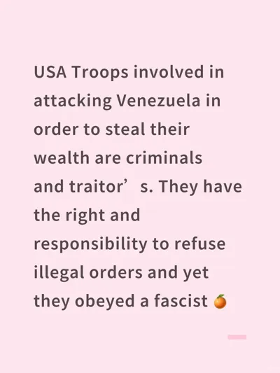 USA Troops involved in attacking Venezuela in order to steal their wealth are criminals and traitor’s. They have the right and responsibility to refuse illegal orders and yet they obeyed a fascist