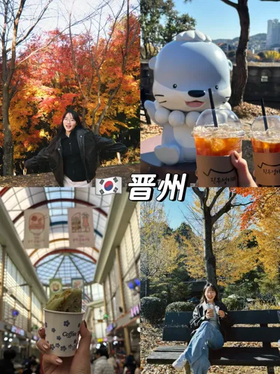 这个公园真的很大,坐公交到山脚,然后沿着步道一直往上爬,是一个巨大的上坡哈哈哈。秋日的风光特别好,意外发现这里也是某韩剧的拍摄地(韩国特别贴心的一点就是,会把拍摄地点标注出来)。山上有一个晋阳湖动物园,门票才1000韩币,不过看到动物们待在那么小的环境里,心里特别难受