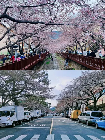 余佐川:镇海区赏樱首选地,小溪两边樱花树绵延约1.5公里,形成樱花隧道,白天樱花烂漫,夜晚灯光映照下更显梦幻。