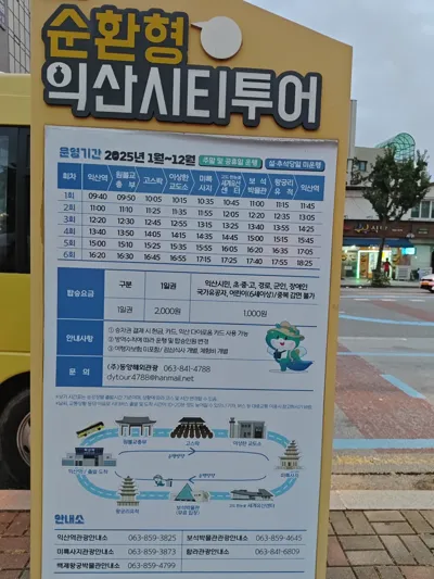 只需要2000韩元一天随便坐,停靠所有景点(因为益山的公交车真的非常非常少,而且等车时间很长)。