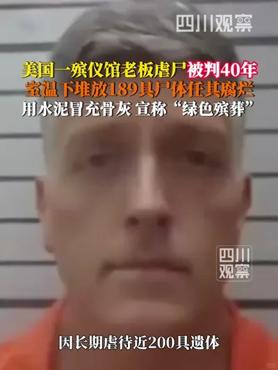 2月7日据环球时报援引美媒报道,美国一殡仪馆老板虐尸被判40年 。该殡仪馆主打所谓“绿色殡葬”,却在室温下随意堆放189具尸体任其腐烂,蛆虫和腐烂液体覆盖地板,他被指控用水泥灰冒充骨灰骗家属,同时挪用收取的殡葬服务费用于个人奢侈消费。
