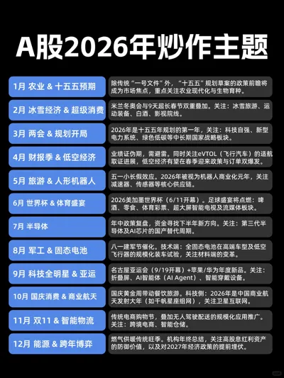 建议收藏 2026年A股最全炒作日历!抓住这12个财富风口