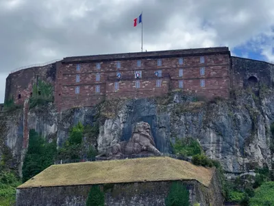 图2: 贝尔福城堡,雄狮雕塑。我们在城堡上眺望市区。
