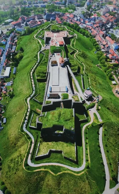 图5.蒙梅迪城堡,(洛林北部),1545年,查尔斯.昆特在蒙梅迪建造了一座堡垒,1657年沃邦开始加强防御,在1659年签订《比利牛斯山脉条约》中,蒙梅迪被并入法国。