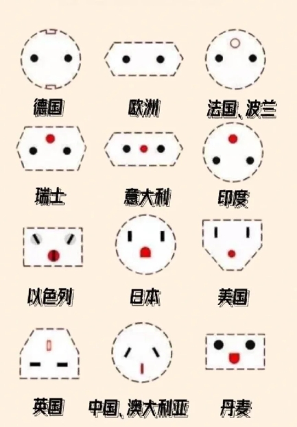 国标插头在中国、澳大利亚、新西兰、阿根廷使用,特点扁头三插。
