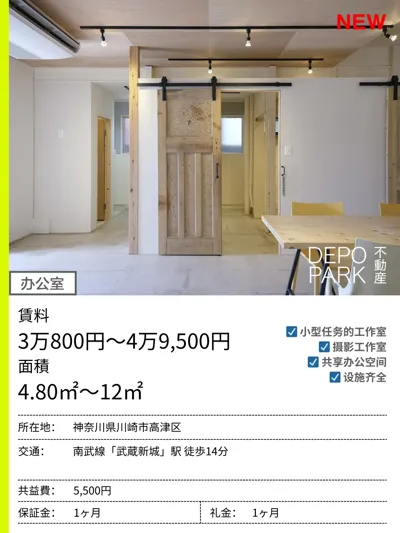 如果你正需要一个 能让你专注 2〜6 小时、不被打扰、成本压力小的小空间, 位于川崎市高津区的这一处会非常适配。 位置 JR 南武线「武蔵新城」步行 14 分钟 安静、不喧闹,很适合沉下心创作。 空间信息 ・ ...