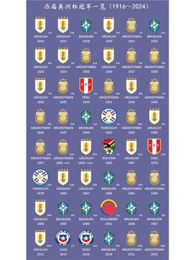【美洲杯】一图看懂历届美洲杯冠军 New