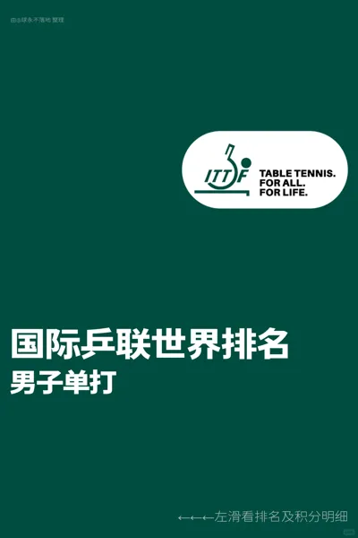 【国际乒联世界排名】2026年第6周-男子单打