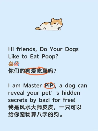 Hi, Friends. I\m Master Pipi, a Chinese Xishi dog and expert in Feng Shui. I want to know: do your dogs eat poop? Master Pipi used to have this problem before! I studied Feng Shui and found out it mig ...