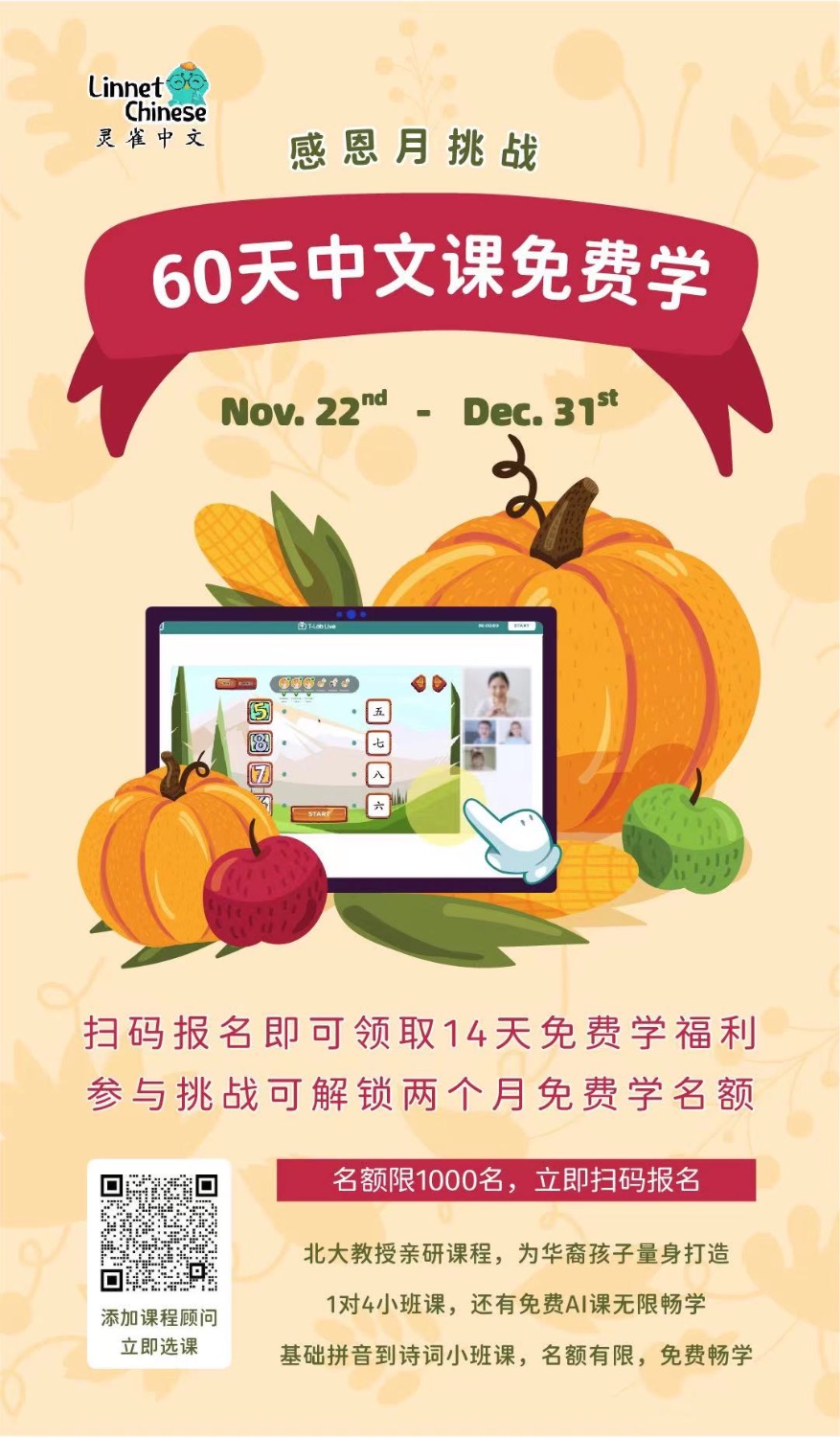 北大对外汉语系资深专家开设的汉语公开体验课,保证完全免费,4大等级,专门为海外华人子女开设,包含古诗,读写,保存下方vx二维码,领取中文课 ...