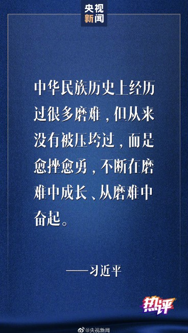 习近平总书记的这句话站在历史纵深里 ——“中华民族历史上经历过很多磨难,但从来没有被压垮过,而是愈挫愈勇,不断在磨难中成长、从磨难中奋起”。之前在会见来访的柬埔寨首相洪森时,他曾讲,“中华民族是从艰难困苦中走过来的”。面对今天这场严峻的现实大考,总书记实际上是在提醒我们,要善于从民族前行的历史积淀中汲取力量。 在谈到这是“新中国成立以来在我国发生的传播速度最快、感染范围最广、防控难度最大的一次重大突发公共卫生事件”时,习近平总书记强调,“防控工作取得的成效,再次彰显了中国共产党领导和中国特色社会主义制度的显著优势”。这是在要求我们,时刻不要忘记,应考时,我们的底气来自于哪里,要继续把这些显著优势发挥好。