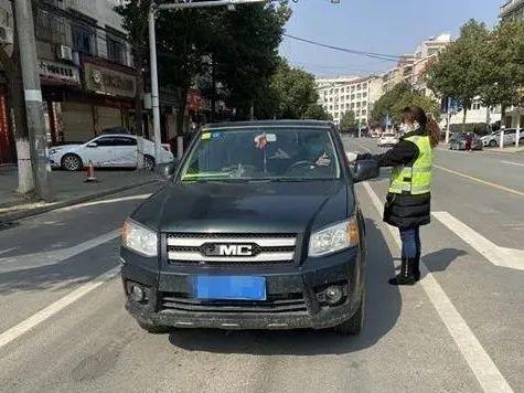 袁芳在黄梅县检察院负责的交通管制点值勤。