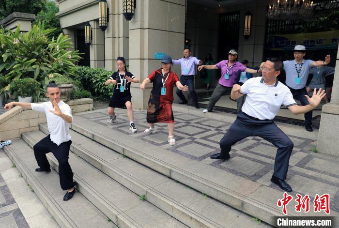 华人网成都6月12日电 (王利文 尧欣雨)“‘老外’也在打太极拳!”11日下午,走进位于成都市武侯区的桐梓林社区邻里中心,意大利侨网副总编辑李俏红看着正练习太极拳的十余名中外居民惊叹道。“提脚,开步,半蹲,放松……”在太极爱好者、来自法国的社区外籍主任助理罗昂带领下,社区居民积极参与“爱成都,迎大运”相关活动,以实际行动迎接第31届世界大学生夏季运动会(简称成都大运会)。 在罗昂的感染下,参访的海外华文媒体一行纷纷加入其中,感受运动乐趣。“感谢你把中国太极传播到全世界。”印度尼西亚《一带一路报》社长曾惠阳赞许地对罗昂说。 由四川省侨办、省政府新闻办和华人网四川分社共同组织的“行走中国·2023海外华文媒体看大运”活动10日至11日在成都举行。来自美国、加拿大、阿根廷等14个国家的25家海外华文媒体走进桐梓林社区邻里中心等地,体验“爱成都,迎大运”的火热氛围,聚焦“大运之城”如何拥抱世界。