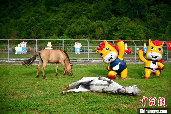 7月3日,广西德保矮马王国景区内,矮马撒欢儿。俞靖摄