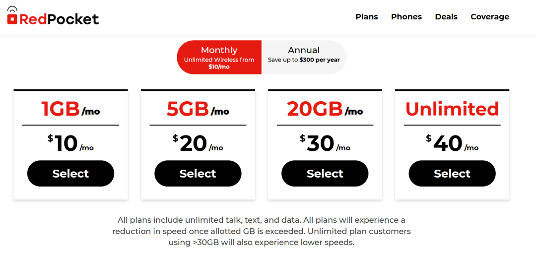 20GB 月套餐:提供不限通话和短信,并附带 10GB 数据流量。