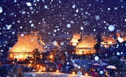 位于京都附近的美山茅葺之里被白雪覆盖,犹如童话世界。