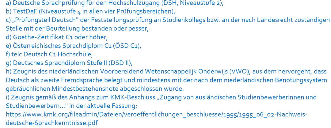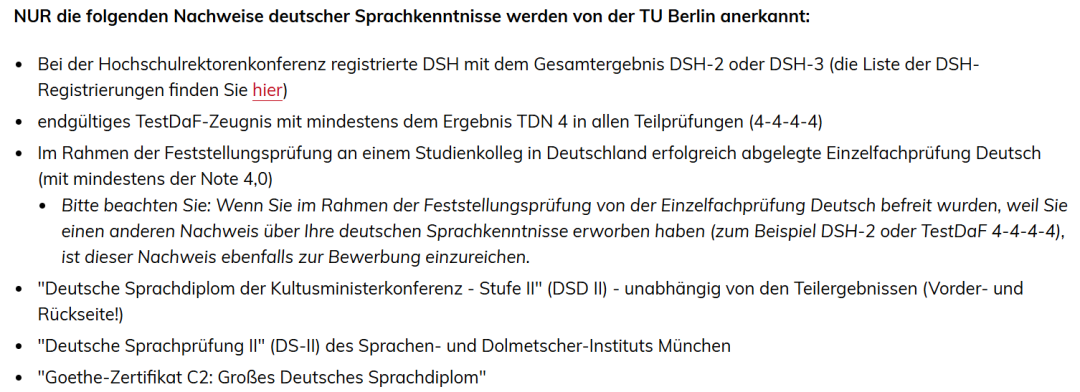 注意,这些专业不发DSH条ZU:Bewerber für Internationale Beziehungen (Bachelor), Medizin (Staatsprüfung), Zahnmedizin (Staatsprüfung) und Medical Radiation Sciences (Master)02)申请语言班(Propädeutikum) 可以提交B2等级证书,或B1等级证书加上B2语言班在读证明,或者是德福12分(新增)。
