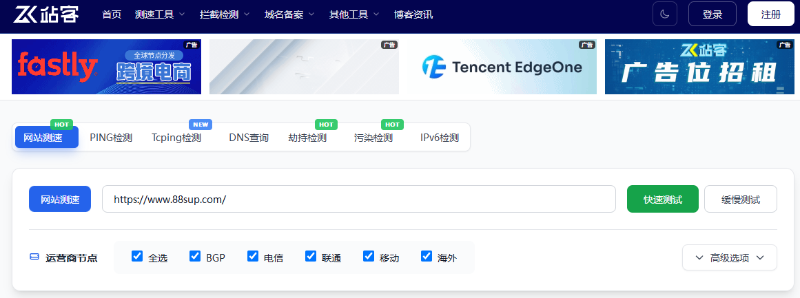 你可能没意识到,你的网站可能正在“掉速”,而你还在以为是流量问题。 我见过太多站长熬夜折腾内容、SEO、广告,却忽视了一个根本问题——网站本身跑得慢。访客点开首页,三秒没反应就走了;微信里分享链接被拦截;DNS 被污染;SSL 证书链断裂……这些事没上热搜,但它们悄悄吞掉了无数站点的排名、转化和口碑。 于是,我们做了 zhanke.com ——一个专为 站长、开发者、SEO从业者 打造的综合测速与检测平台。我们不是想再造一个“测速工具”,而是想解决“测速完,能干嘛”的问题。 一、速度,决定信任用户对速度的耐心,平均不到 3 秒。对,你没看错。 但很多人还在拿着一个单一测速结果自我安慰。 zhanke.com 的网站测速就是为此设计的:全链路分析,从服务器响应到前端渲染,真实探测全国节点,直击性能瓶颈。 测速不是目的,诊断才是。 二、看不见的陷阱:劫持、拦截、污染你也许以为 DNS 就是“域名解析”。不,它是互联网的命门。 DNS 劫持和污染问题,正在悄悄影响无数企业。用户访问你的域名,却被导向了别的页面;微信里分享链接被拦截,QQ 里点开跳出“风险提示”——这些不是你网站出错,而是网络层在背叛你。 zhanke.com 提供 DNS 劫持检测、污染检测、微信拦截检测。 我们不止告诉你问题在哪,还提供清晰报告: