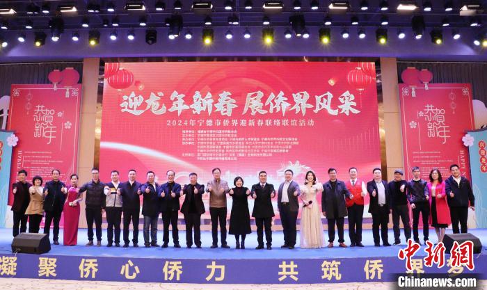 华人网宁德1月16日电 (林榕生)16日,以“迎龙年新春展侨界风采”为主题的福建省宁德市侨界迎新春联络联谊活动举行。 合影留念。林榕生摄 活动现场,东南亚舞蹈《在天空翱翔》、歌曲《桑塔露琪亚》、诗朗诵 ...